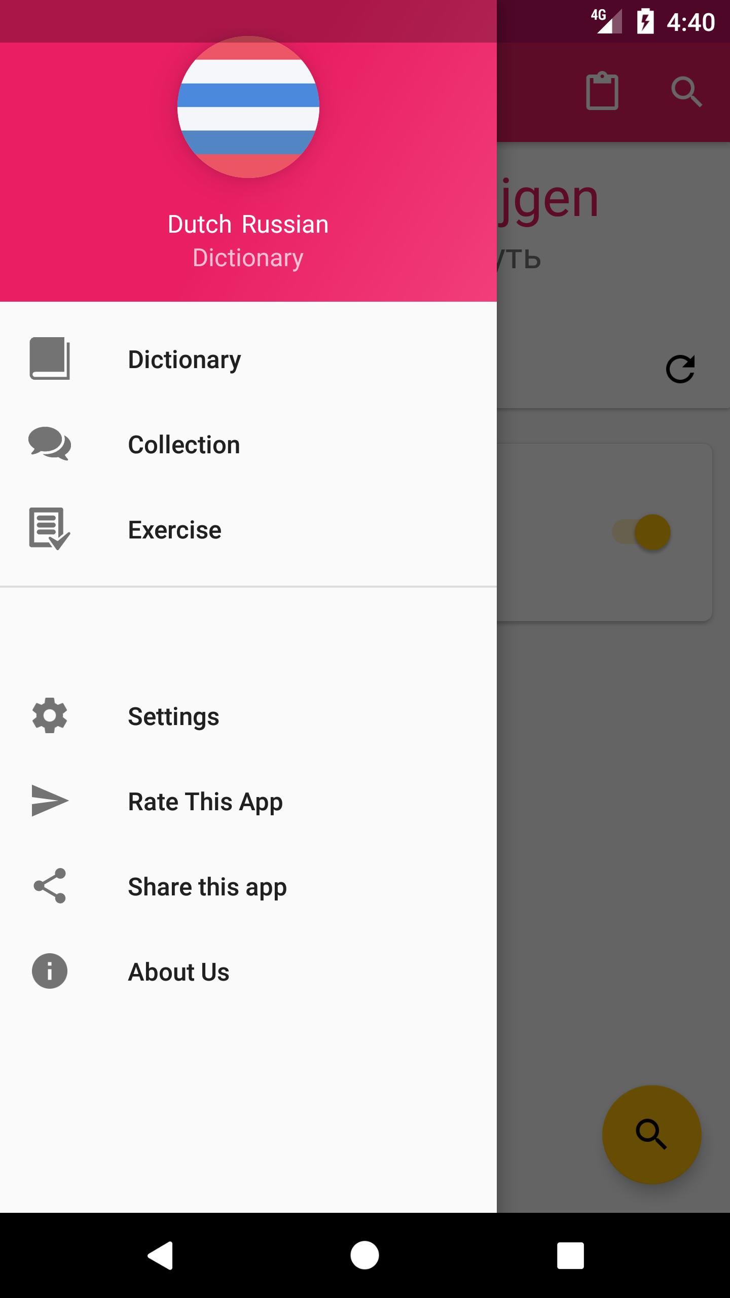 Ứng dụng miễn phí ngoại tuyến của Russisch Nederlands Woordenboek & Vertaler. Kết nối Internet là không cần thiết! Nếu bạn muốn học tiếng Nga hoặc tiếng Hà Lan một cách hiệu quả nhất, không có lựa chọn nào tốt hơn Dragoma! Dragoma hiển thị định nghĩa / ý nghĩa của các từ tiếng Nga hoặc tiếng Hà Lan khi bật lên mà không cần mở ứng dụng từ điển. Không gặp rắc rối khi chuyển đổi giữa các ứng dụng. Bạn có thể tìm kiếm các định nghĩa từ trong khi đọc các tệp PDF / sách điện tử trong khi duyệt internet và thậm chí trong khi chơi trò chơi. Chỉ cần sao chép từ, từ điển Dragoma sẽ cho bạn thấy ý nghĩa / bản dịch.