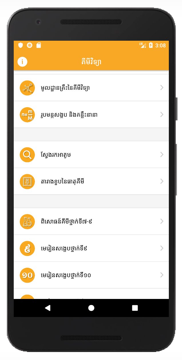 Khmer Chemistry, đến từ nhà phát triển CHEAB.Kunthea.11, đang chạy trên hệ điều hành Android trong quá khứ.