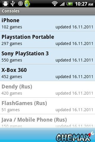 Large cheats database for great number of game consoles. Supports 38 different console types. More than 11000 games! Quick search, several text view options, online update and this all for free! Requires at least Android v1.6
