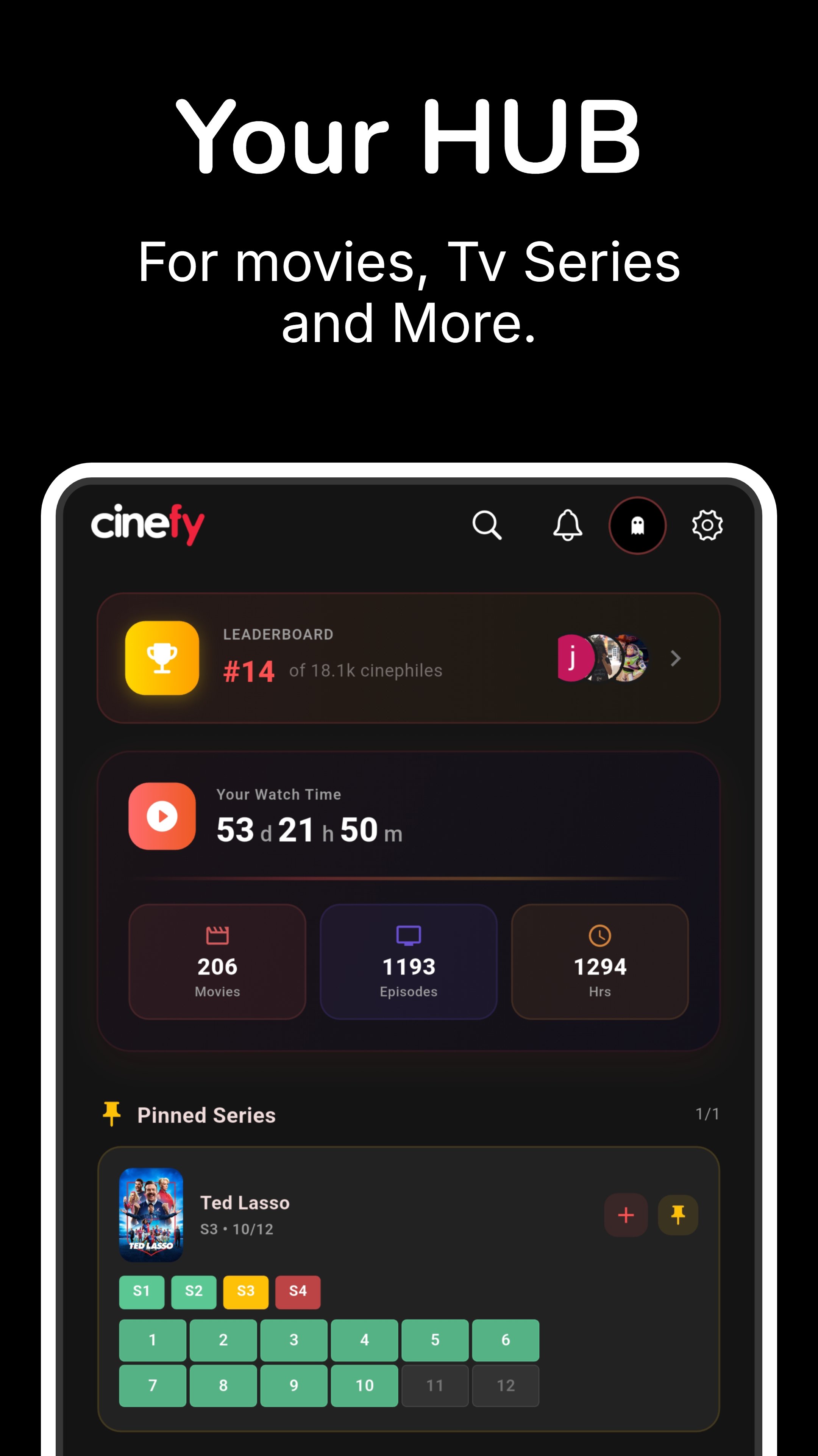 Một trong những tính năng thú vị nhất của ứng dụng là khả năng tính toán số giờ bạn đã dành để xem các bộ phim và bộ phim yêu thích của mình. Hệ thống của chúng tôi nhận ra tất cả các sản phẩm bạn đã xem và tự động tính toán cho bạn. Chỉ cần tưởng tượng bạn có thể biết được bạn đã dành bao nhiêu ngày hoặc tuần trước màn hình để thưởng thức những câu chuyện yêu thích của mình!