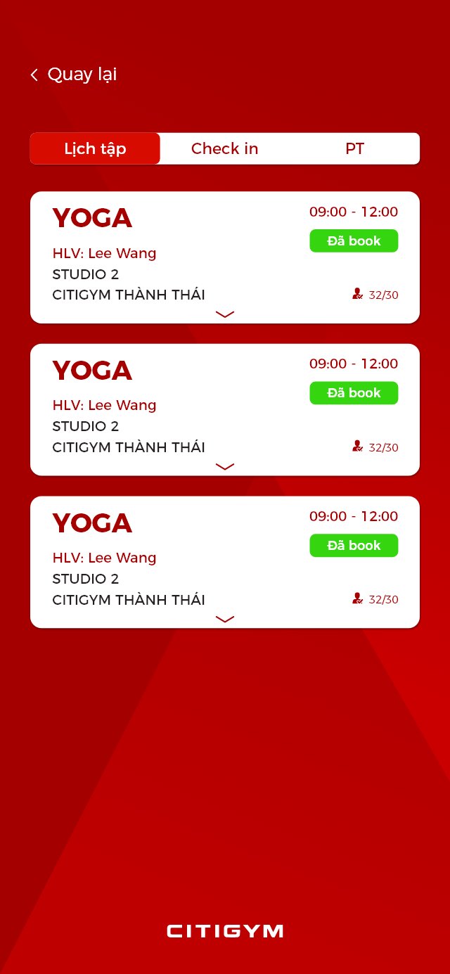 - Bước 3: Tra cứu các lịch tập luyện (Gym, Yoga, Zumba, Dance ...)