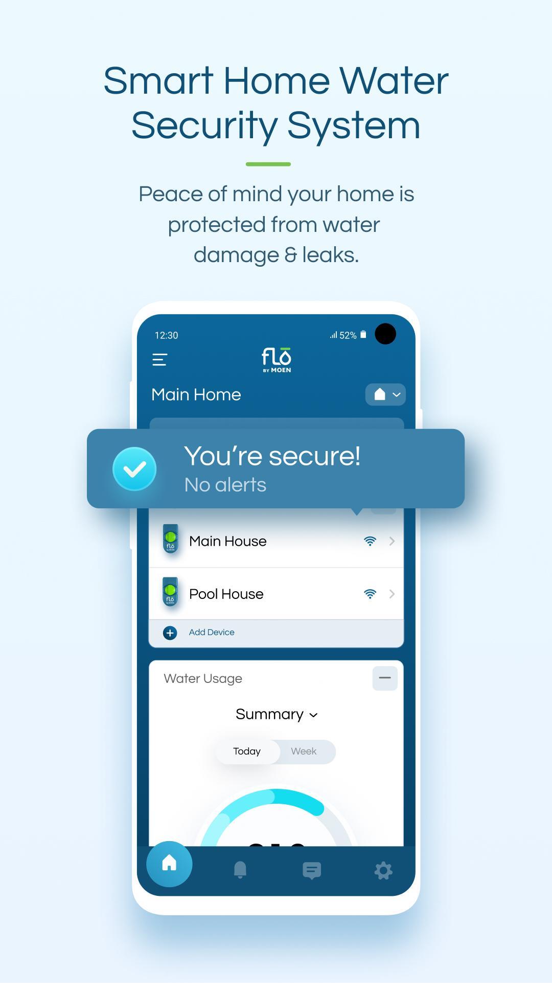 Flo by Moen là dòng trực tiếp của bạn để bảo mật, bảo tồn và tiết kiệm với các tính năng ứng dụng chính này: