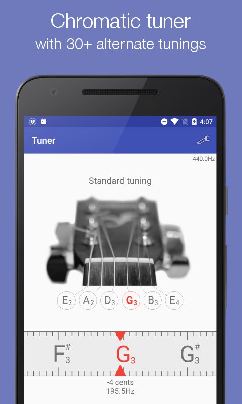 Ứng dụng Guitar Tuner này là một công cụ hoàn hảo cho cả người mới bắt đầu và nghệ sĩ guitar chuyên nghiệp. Ứng dụng này rất dễ sử dụng và giúp điều chỉnh cây đàn guitar của bạn với âm thanh dây giống như âm thanh trong ứng dụng. Bằng cách sử dụng ứng dụng bộ chỉnh này, bạn có thể có được chất lượng âm thanh tuyệt vời và một cách hiệu quả để điều chỉnh dây theo cây đàn guitar acoustic của bạn.