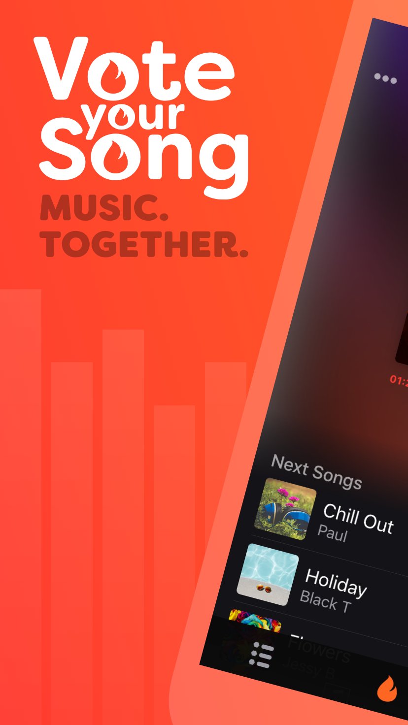 Nguyên tắc: Bài hát được bình chọn nhiều nhất nằm ở đầu danh sách của hộp nhạc. Để giữ cho nó thú vị, thời gian hồi chiêu sẽ đặt lại tất cả các phiếu bầu sau một thời gian nhất định và mọi người có thể bỏ phiếu lại.