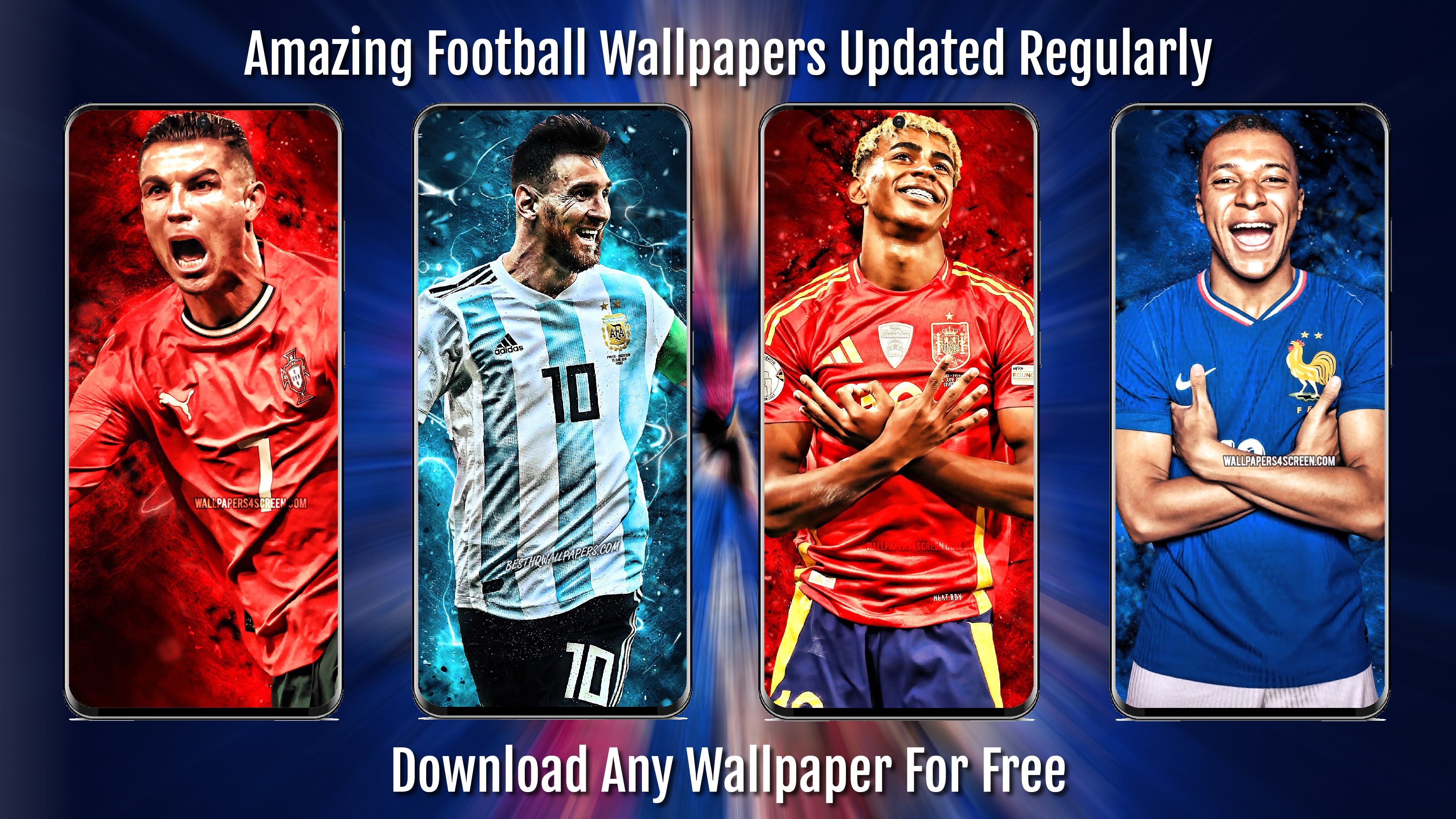 Không cần phải tìm thêm ứng dụng Hình nền bóng đá. Chúng tôi thêm mới Chất lượng hàng đầu 4K | Hình ảnh cầu thủ bóng đá Full HD hàng ngày! Ứng dụng này là một công cụ tuyệt vời cho 4K | Hình nền đội bóng đá Full HD. Ứng dụng được thiết kế cho điện thoại và máy tính bảng Android, vì vậy nó hoạt động hiệu quả trên mọi kích thước màn hình hoặc độ phân giải màn hình.