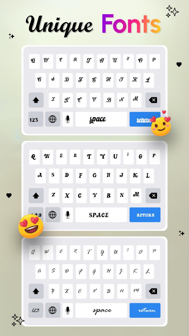 ♡ sử dụng bàn phím phông chữ văn bản phong cách và thể hiện cảm giác của bạn theo cách lạ mắt và thú vị hơn. Bàn phím này sẽ tạo phông chữ phong cách cho whatsapp & phông chữ phong cách cho insta. Bây giờ bạn có thể làm bạn bè trên mạng xã hội ngạc nhiên bằng cách cho họ xem bàn phím trang trí sinh học phong cách và mới nhất của bạn app.trang trí mọi chú thích và tạo câu chuyện theo cách lạ mắt với phông chữ nghệ thuật & bàn phím phông chữ.