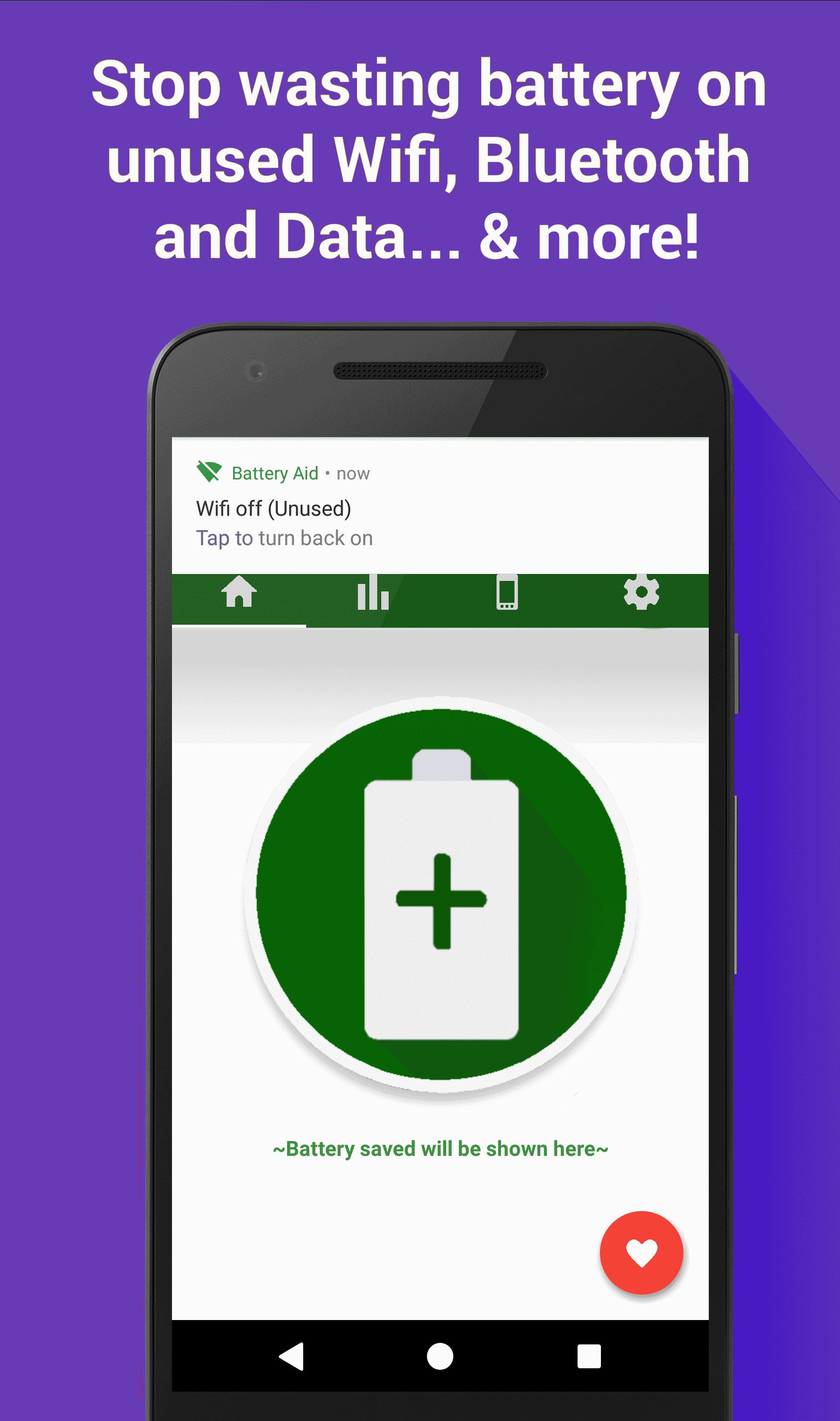 Battery Aid 2 works alongside your device & Battery Saver mode to increase battery life even further. No ads!