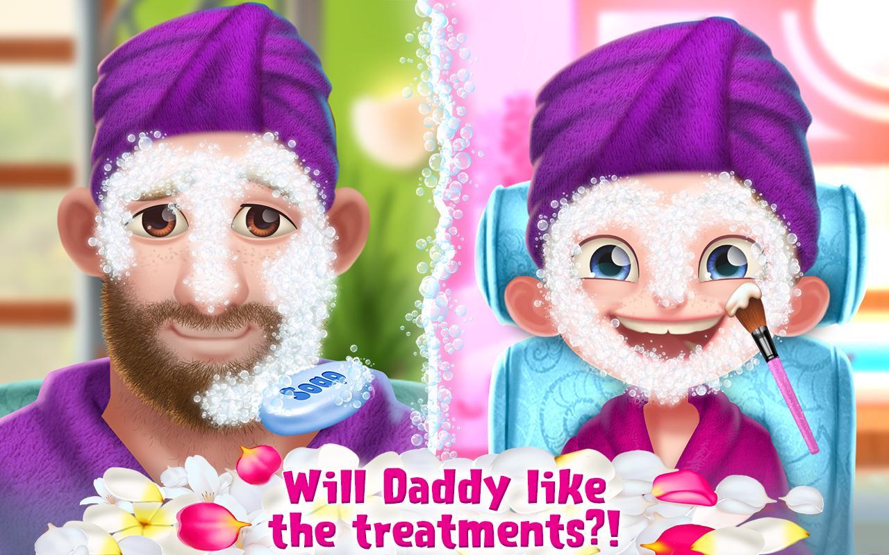 > Thời gian trang điểm trong thẩm mỹ viện spa! Thuyết phục bố rằng bố sẽ thích nó. Hãy cạo râu cho anh ấy, sau đó làm cho anh ấy trở nên xinh đẹp với son dưỡng môi sáng bóng, kẻ mắt tinh tế và má hồng lấp lánh!