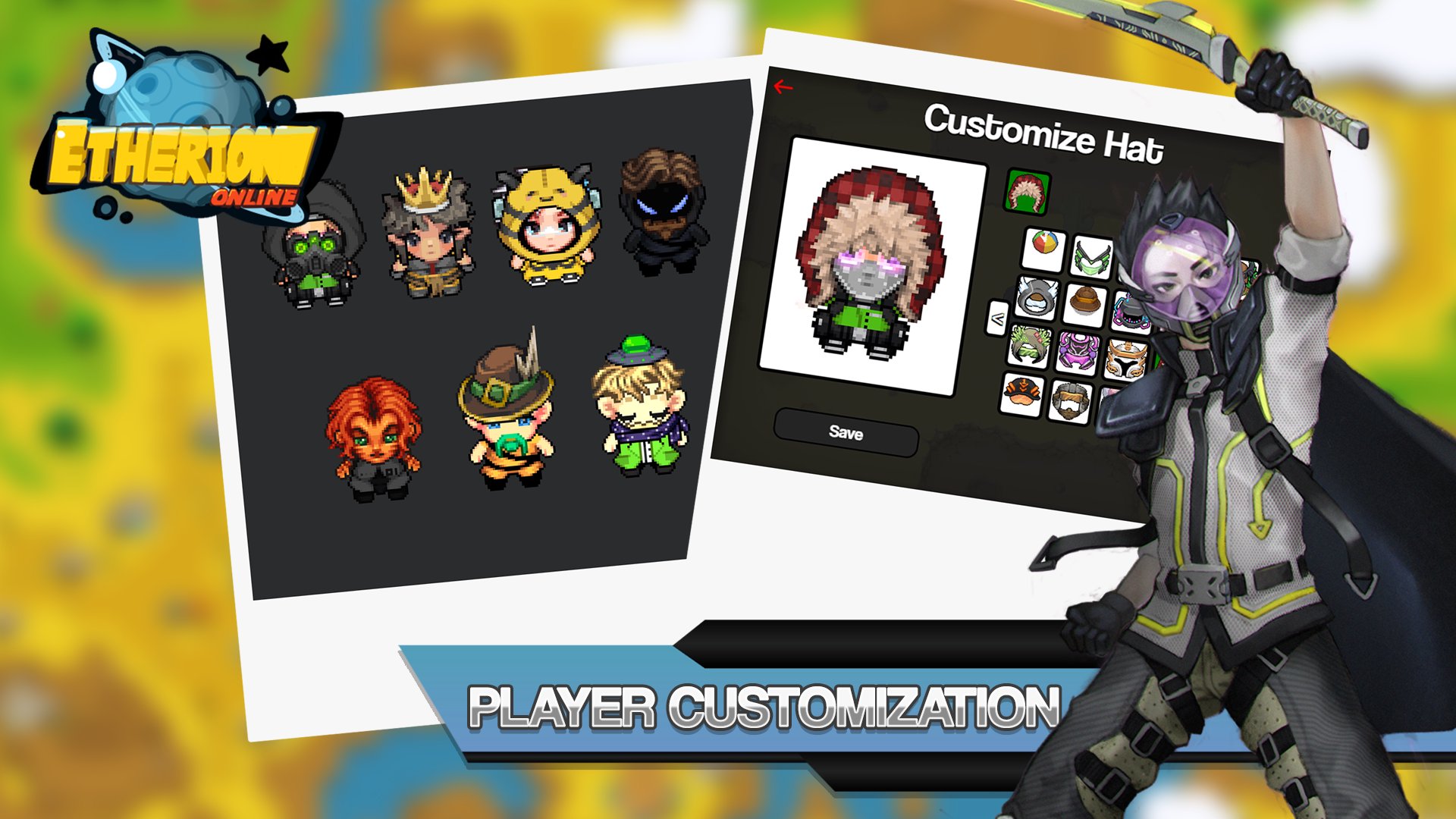 Etherion Online RPG có hệ thống tùy chỉnh MIỄN PHÍ sử dụng nhiều tài sản khác nhau cho tóc, lông mày, mắt, râu, miệng và nhiều màu sắc khác nhau. Hiện có hơn một triệu sự kết hợp khác nhau. Nếu bạn muốn tạo trang phục TÙY CHỈNH của riêng mình, hãy mua vé tải lên từ cửa hàng và tìm mẫu trang phục trên Discord của chúng tôi!