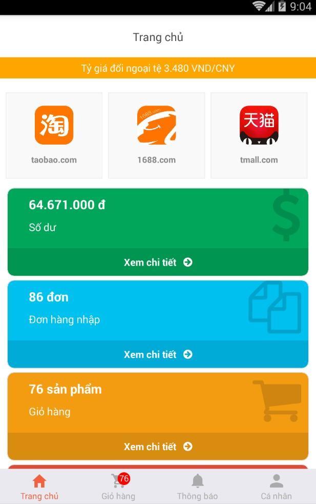 Ứng dụng nhập hàng trung quốc từ các website thương mại điện tử hàng đầu Trung Quốc, bao gồm: