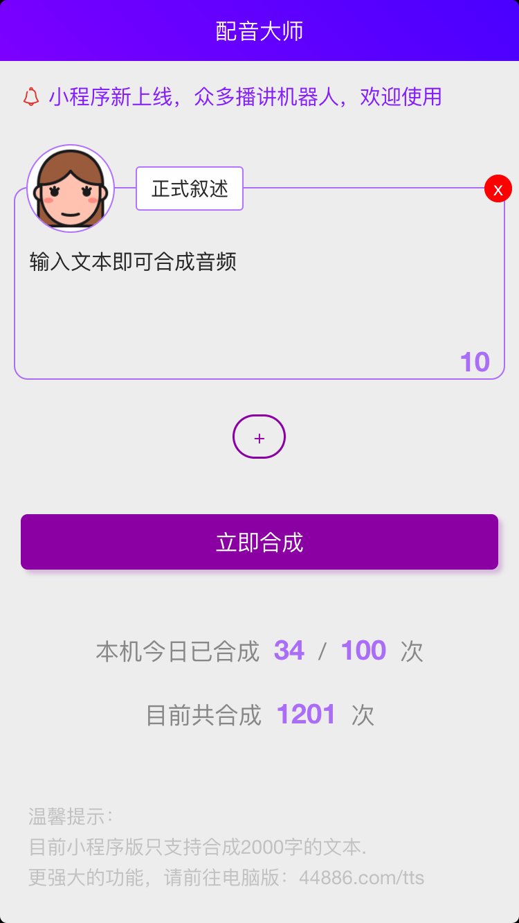 目前拥有晓晓、小悠、云阳、云叶、云夕、小韩、小莫、小宣、小锐等播讲机器人,每个播讲机器人拥有多个风格。可以在同一音频中,合成不同的风格,能一键制作广播剧。