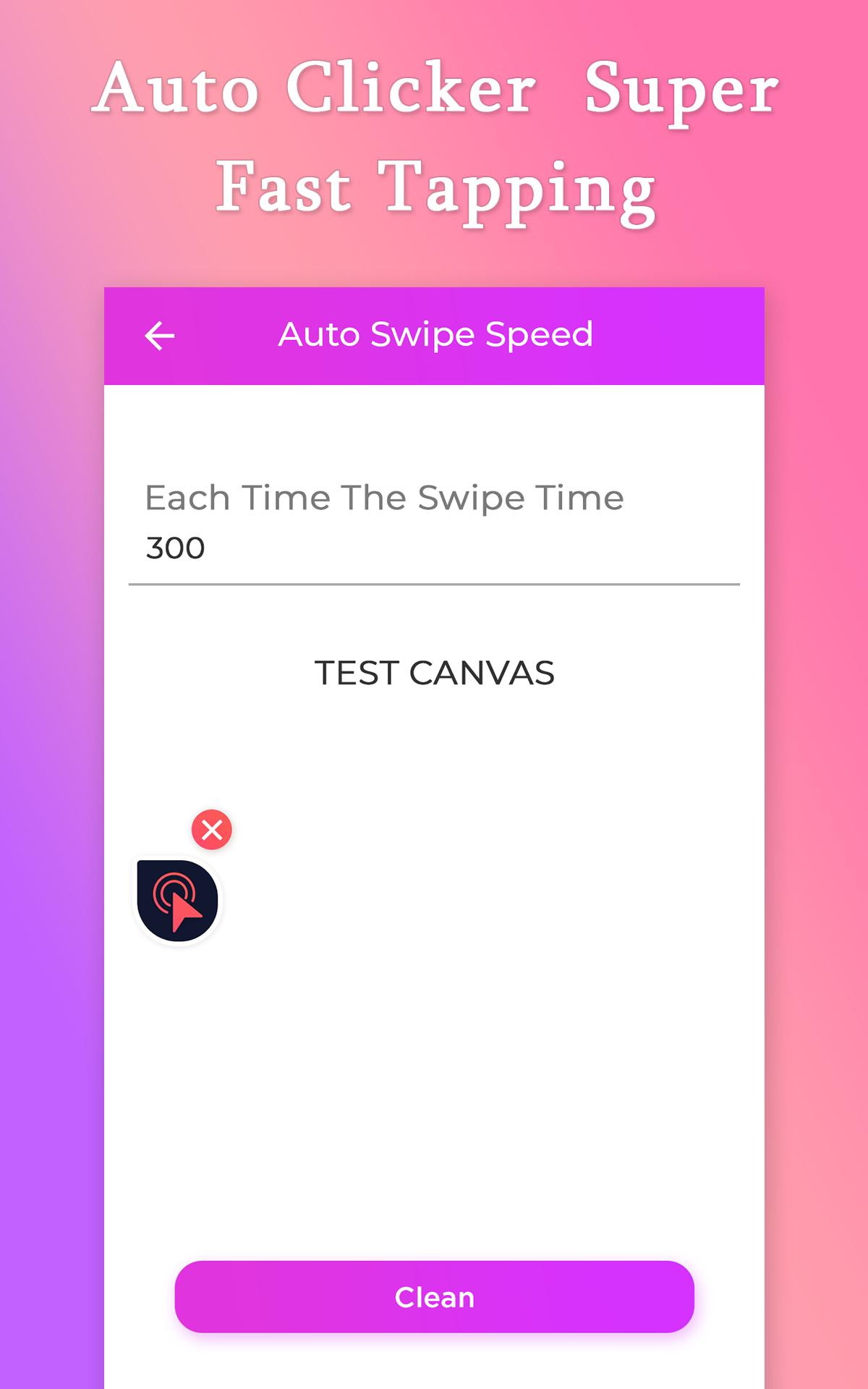 Auto Clicker : Super Fast Tapping app which has a Float point with is movable in your device anywhere, just tap on the start button and it will automatically provide users float point with that you can easily control your click.which have special option to Set Click duration to get perfect duration between clicks, and it also option to set Click Counts per seconds.app which has the best option to adjust auto swap speed in your mobile with simple swape buttons.