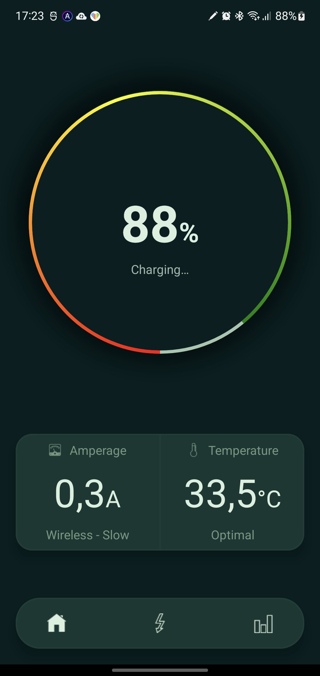 Nếu điện thoại tiêu thụ -300 mA khi ở chế độ chờ và bộ sạc cung cấp 500 mA, ứng dụng sẽ hiển thị khoảng +200 mA.
