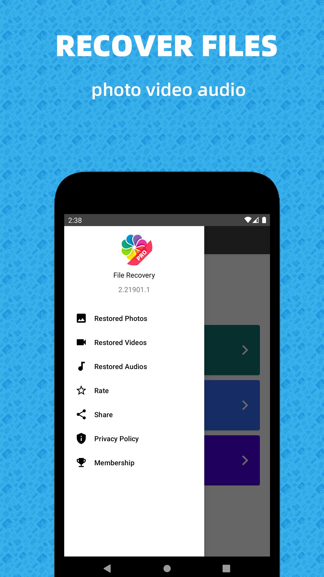 Khôi phục các tệp phương tiện đã xóa (ảnh, video, âm thanh) từ bộ nhớ của thiết bị và khôi phục ảnh ngay trở lại điện thoại của bạn. Đây là những gì nó là tất cả về. Ứng dụng Khôi phục tệp để khôi phục ảnh, video, âm thanh đã xóa, một công cụ quét tệp mạnh mẽ và nâng cao có trách nhiệm duyệt qua tất cả các tệp của bạn bao gồm hình thu nhỏ và tệp được lưu trong bộ nhớ cache, đồng thời khôi phục các tệp bị mất.