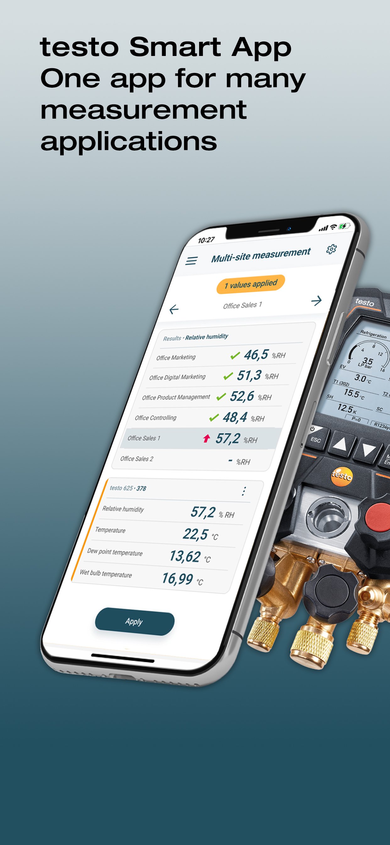 - Tất cả trong một: Ứng dụng thông minh testo hỗ trợ bạn các phép đo về hệ thống làm lạnh, điều hòa không khí và sưởi ấm, cũng như đảm bảo an toàn và chất lượng thực phẩm và dầu chiên cũng như theo dõi khí hậu trong nhà và điều kiện bảo quản.