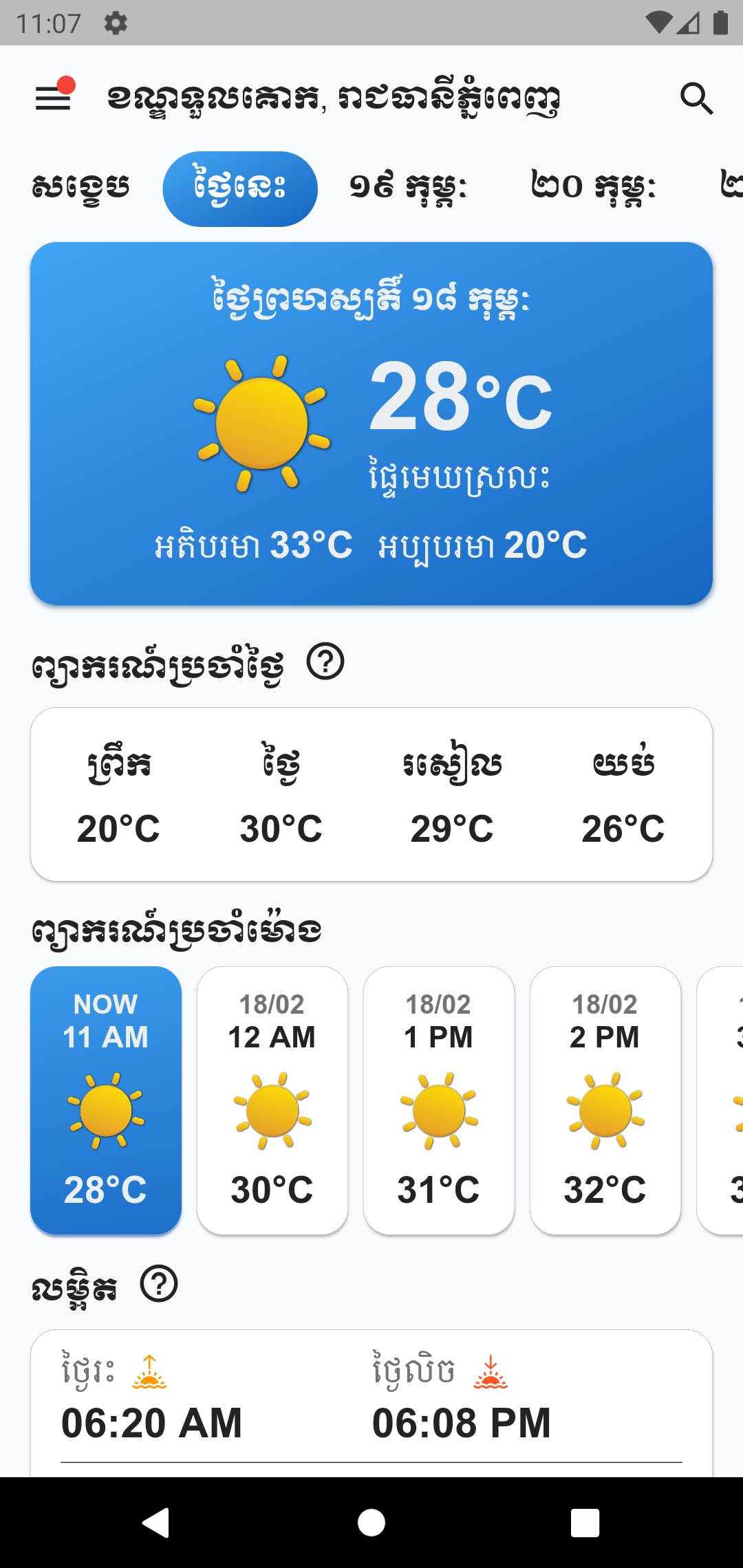 - nhận được thời tiết của các tỉnh và thành phố thủ đô Campuchia